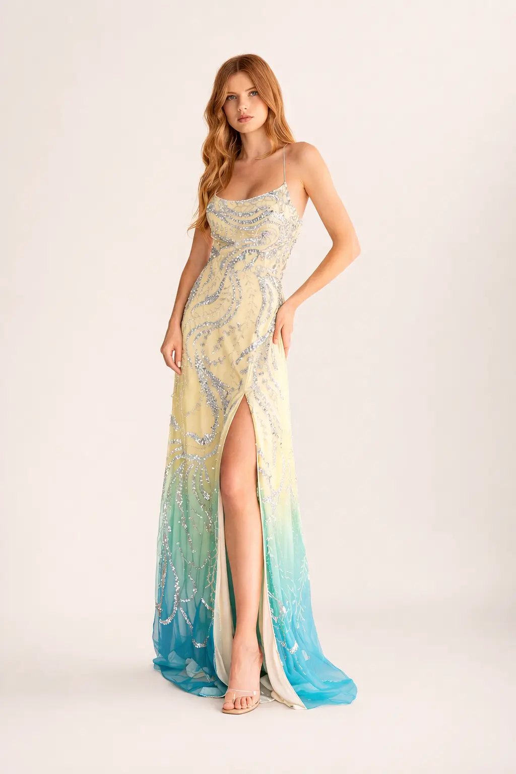 Sé el primero en valorar “Aqua Fade — Beaded Gown”